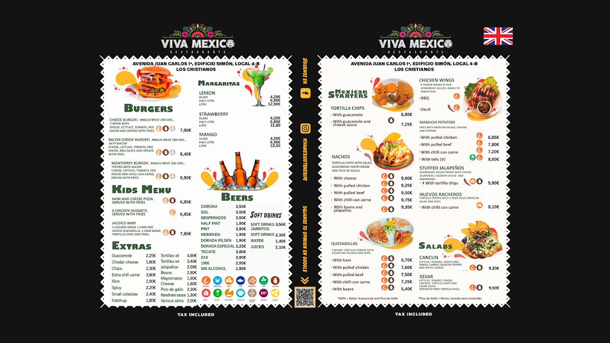 Located at C. Lisboa, LOCAL 27, 38660 Costa Adeje, Santa Cruz de Tenerife, Spain, Viva Mexico brings a lively Mexican restaurant experience to one of the island’s most vibrant areas. From the moment you step inside, the atmosphere feels relaxed yet stylish, making it an easy choice for casual lunches, laid-back dinners, or a fun night out with friends. The setting strikes a balance between casual and trendy, which is often reflected in positive reviews that highlight both the food and the welcoming vibe.